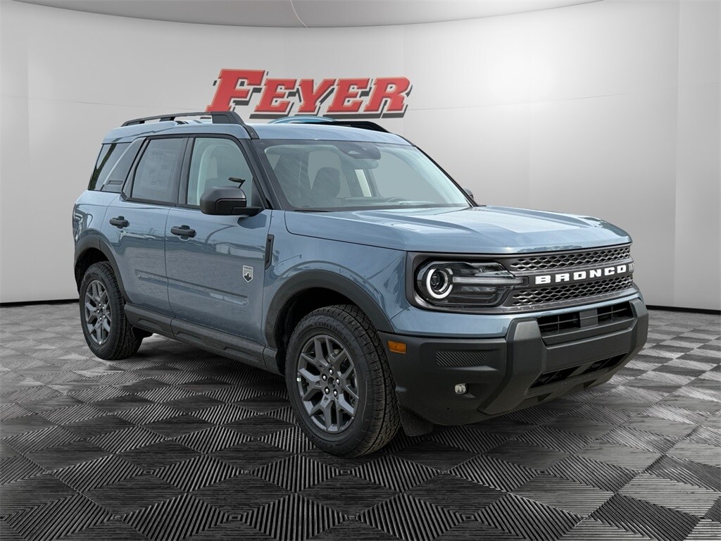 Beautiful Azure Gray Metallic Tri-Coat 2025 Ford Bronco Sport Big Bend 4WD 8-Speed Automatic 1.5L EcoBoost Bluetooth (Handsfree) Phone/Wireless, SYNC 911 Assist w/Vehicle Health Report, SYNC Voice Activated Communications, Voice Controlled iPod/Mp3 input/USB port, SiriusXM Satellite Radio, Apple CarPlay/Android Auto, Waze Navigation Integration, Alexa Built-In, Auto High-beam Headlights, Convenience Package, Equipment Group 200A, Front Driver/Passenger Seat Back Map Pockets, Heated 8-Way Power Driver's Seat, LED Fog Lamps, Premium Wrapped Steering Wheel, Rear Parking Sensors, SYNC 4 w/Enhanced Voice Recognition, Universal Garage Door Opener (UGDO), Wheels: 17" Carbonized Gray-Painted Aluminum.