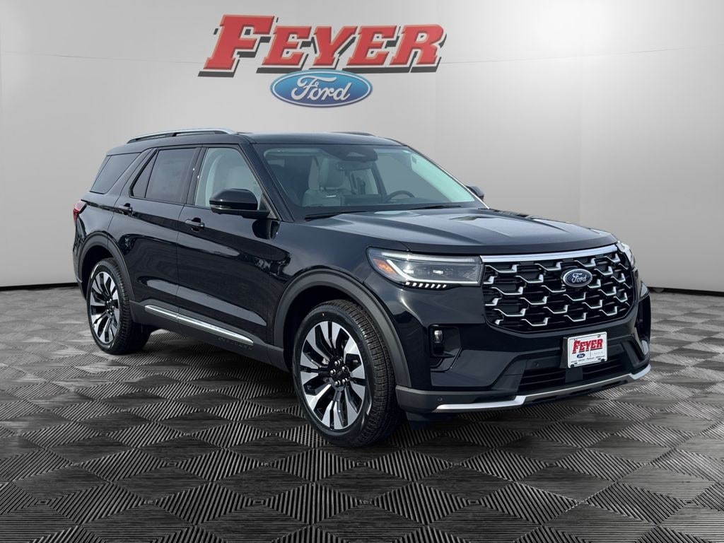 New Price! Agate Black Metallic 2026 Ford Explorer Platinum 4WD 10-Speed Automatic 2.3L EcoBoost I-4 Pre-Collision Assist with Automatic Emergency Braking w/Pedestrian Detection, Adaptive Cruise Control/Lane Centering System, BlueCruise, Bluetooth (Handsfree) Phone, Ford Digital Experience, Google Assistant, Google Maps, Google Play, Waze Navigation Integration, Apple CarPlay® and Android AutoTM Wireless Compatibility, 13.2" Color LCD Touchscreen, Alexa Built-In, SiriusXM Satellite Radio, Voice Controlled iPod/Mp3 input/USB Port, Ford CoPilot 360, Heated/Cooled Front Seats, Heated Rear Seats, Keyless Entry Keypad, 911 Assist, 360-Degree Camera, Lane Keeping System, Automatic High-Beam Headlamps, FordPass Connect w/5G Modem, Wi-Fi Hotspot, 2nd Row Captain's Chairs, Wireless Charging Pad, Blind Spot Information System (BLIS), Rain-Sensing Windshield Wipers, Rear View Camera, Explorer Platinum, 4WD, Active Cruise Control, ActiveX Trimmed Captain's Chairs, Auto High-beam Headlights, Compass, Electronic Stability Control, Equipment Group 600A Standard Package, Exterior Parking Camera Rear, Front dual zone A/C, Garage door transmitter, Heated door mirrors, Heated steering wheel, Illuminated entry, Knee airbag, Lux Leather Package, Memory seat, Navigation System, Panoramic Fixed Glass Roof with Power Shade, Platinum Badges on Front Row Seats, Power Liftgate, Premium Leather Seating Surfaces Captain's Chairs, Quilting and Stitching on Door Panels, Quilting and Stitching on Seats, Radio: B&O Sound System by Bang & Olufsen with HD, Rain sensing wipers, Rear air conditioning, Remote keyless entry, SecuriCode Keyless Entry Keypad, Traction control, Wheels: : 21" Bright Machined Aluminum w/Tarnish Dark Pockets.