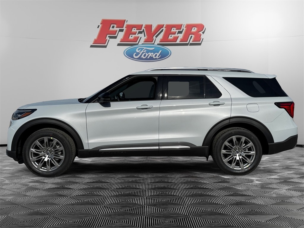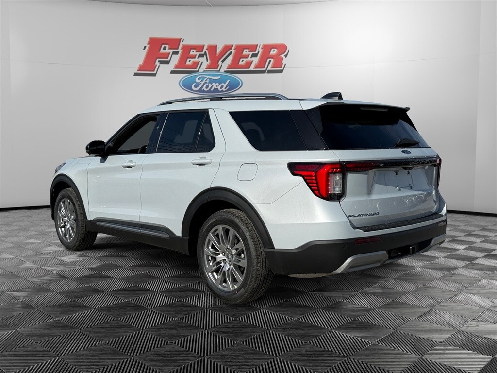 COMING SOON! Space White Metallic 2026 Ford Explorer Platinum RWD 10-Speed Automatic 2.3L EcoBoost I-4 Pre-Collision Assist with Automatic Emergency Braking w/Pedestrian Detection, Adaptive Cruise Control/Lane Centering System, BlueCruise, Bluetooth (Handsfree) Phone, Ford Digital Experience, Google Assistant, Google Maps, Google Play, Waze Navigation Integration, Apple CarPlay® and Android AutoTM Wireless Compatibility, 13.2" Color LCD Touchscreen, Alexa Built-In, SiriusXM Satellite Radio, Voice Controlled iPod/Mp3 input/USB port, Ford CoPilot 360, Heated/Cooled Front Seats, Heated Rear Seats, Keyless Entry Keypad, 911 Assist, 360-Degree Camera, Lane Keeping System, Automatic High-Beam Headlamps, FordPass Connect w/5G Modem, Wi-Fi Hotspot, 2nd Row Captain's Chairs, Wireless Charging Pad, Blind Spot Information System (BLIS), Rain-Sensing Windshield Wipers, Rear View Camera, Explorer Platinum, Active Cruise Control, Auto High-beam Headlights, Exterior Parking Camera Rear, Front dual zone A/C, Heated steering wheel, Knee airbag, Navigation System, Panoramic Fixed Glass Roof with Power Shade, Power Liftgate, Radio: B&O Sound System by Bang & Olufsen with HD, Rear air conditioning, SecuriCode Keyless Entry Keypad, Steering wheel mounted audio controls, Wheels: 20" Luster Nickel-Painted Aluminum.