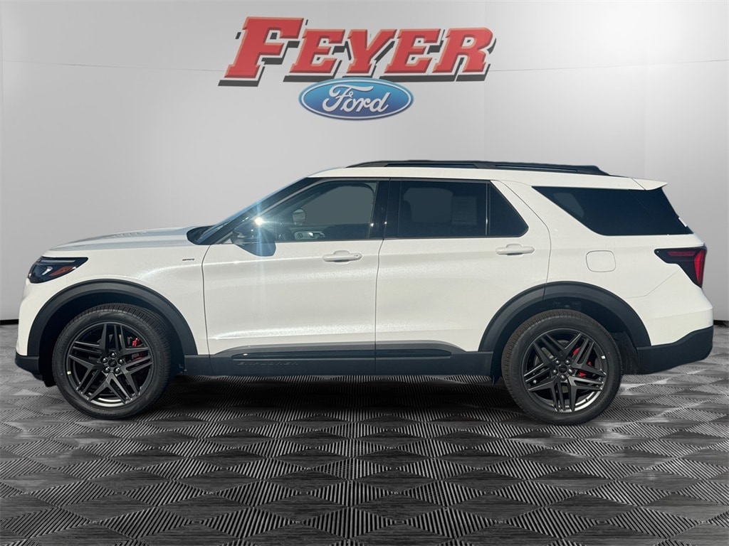 New Price! Star White Metallic Tri-Coat 2026 Ford Explorer ST-Line 4WD 10-Speed Automatic 2.3L EcoBoost I-4 Pre-Collision Assist with Automatic Emergency Braking w/Pedestrian Detection, Adaptive Cruise Control/Lane Centering System, BlueCruise, Bluetooth (Handsfree) Phone, Ford Digital Experience, Google Assistant, Google Maps, Google Play, Waze Navigation Integration, Apple CarPlay® and Android AutoTM Wireless Compatibility, 13.2" Color LCD Touchscreen, Alexa Built-In, SiriusXM Satellite Radio, Voice Controlled iPod/Mp3 input/USB Port, Ford CoPilot 360, Keyless Entry Keypad, 911 Assist, Lane Keeping System, Automatic High-Beam Headlamps, FordPass Connect w/5G Modem, Wi-Fi Hotspot, 2nd Row Captain's Chairs, Blind Spot Information System (BLIS), Rain-Sensing Windshield Wipers, Rear View Camera, Explorer ST-Line, 4WD, 110V/150W AC Power Outlet, 2nd Row Captain's Chairs w/E-Z Entry and Armrest, 2nd Row Heated Seats, ABS brakes, Active Cruise Control, Alloy wheels, Ambient Lighting, Auto High-beam Headlights, Auto-Dimming Interior Rear-View Mirror, BlueCruise (equipment + 1-Year + 90-Day Plan), Compass, Electronic Stability Control, Equipment Group 300A Standard Package, Front dual zone A/C, Heated door mirrors, Heated front seats, Heated steering wheel, Heated Unique Cloth Captain's Chairs, Illuminated entry, Knee airbag, Low tire pressure warning, Manual-Folding Sideview Mirrors, Memory Driver's Seat, Navigation System, Panoramic Fixed Glass Roof with Power Shade, Performance Brakes, Power Liftgate, Premium Package, Radio: B&O Sound System by Bang and Olufsen, Rain-Sensing Wipers (front Only), Red Painted Performance Front and Rear Brake Calipers, Remote keyless entry, SecuriCode Keyless Entry Keypad, ST-Line Street Pack, Traction control, Wheels: 20" Ebony-Painted Machined Aluminum, Wheels: 21" Magnetite-Painted Aluminum.